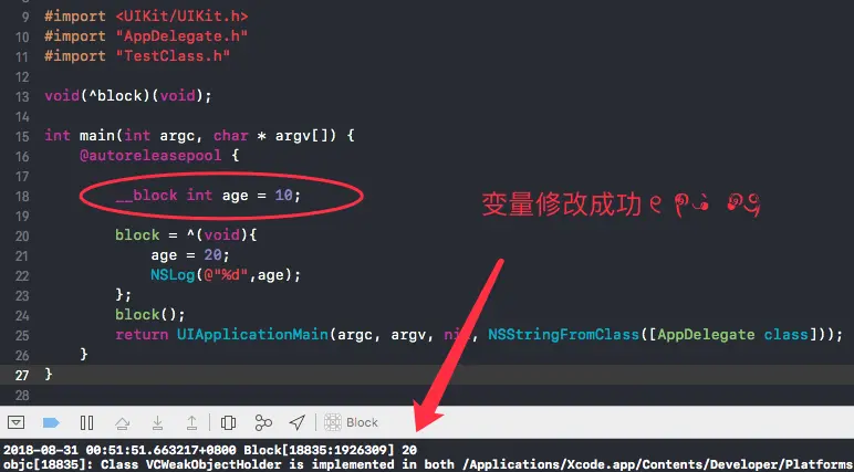 2018-09-04 14:43:32.966624+0800 Block[80253:7808973] 开始执行block
