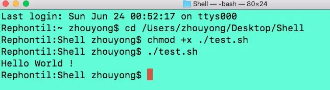 将上面的代码保存好,并在终端 cd 到相应目录(即Shell的位置)