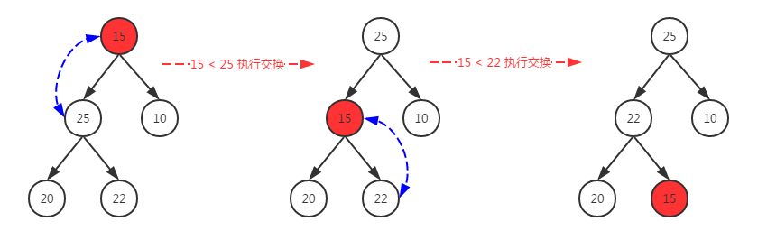 // 判断当前节点是否小于子节点, 若小于执行交换