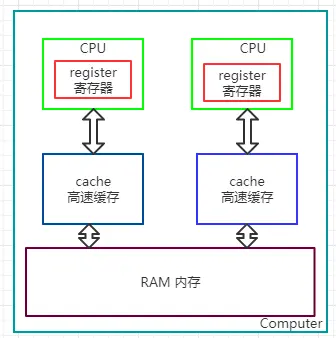 每个CPU都包含一系列的寄存器,它们是CPU内内存的基础。CPU在寄存器上执行操作的速度远大于在主存上执行的速度。这是因为CPU访问寄存器的速度远大于主存。