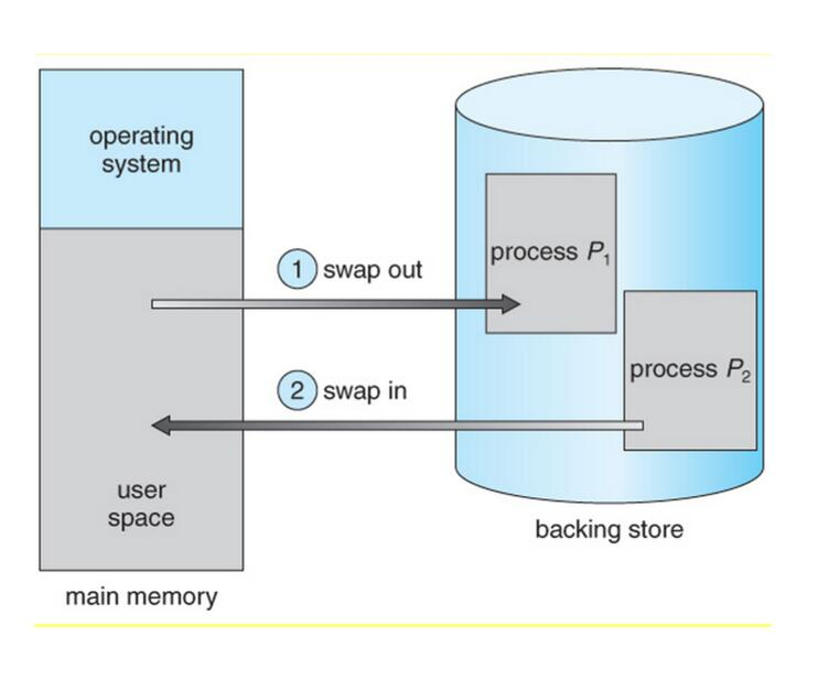 如果没有足够的可用内存来同时保留内存中的所有正在运行的进程,则某些当前未使用CPU的进程可能会被交换到后备存储中。