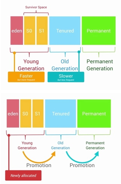 Android的内存堆是分代式(Generational)的,意味着它会将所有分配的对象进行分代,然后分代跟踪这些对象。 例如,最近分配的对象属于年轻代(Young Generation)。 当一个对象长时间保持活动状态时,它可以被提升为年老代(Older Generation),之后还能进一步提升为永久代(Permanent Generation)。