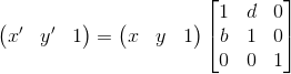 其中当d = 0时,x' = x + by, y' = y,此时,图形的y坐标不变,x坐标随初值(x, y)及变换系数b作线性变化;当b = 0时,x' = x,y' = dx + y,此时,图形的x坐标不变,y坐标随初值(x, y)及变换系数d作线性变化。