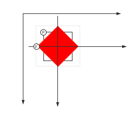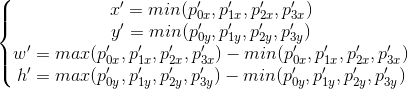 见上图以旋转变换为例,旋转变换会让原有图形的frame从白色框变为虚线框,我们假设原有View的四个点为p0 p1 p2 p3 则旋转变换之后的点为: