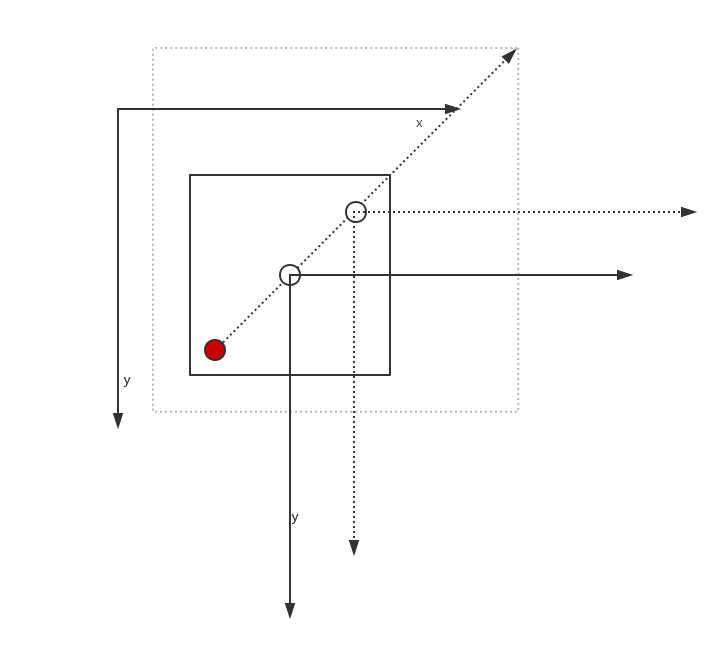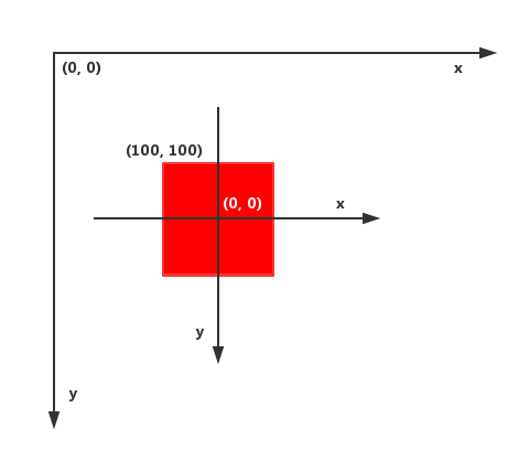 参考上图通过调整anchorPoint的值可以修改内部坐标系的原点位置,设置(0,0)可以把原点移动到View的左上角,设置(1,1)可以把原点移动到右下角,设置(0.5, 0.5)可以把原点移动到View中心。当然anchorPoint的值也不限制在[0,1],可以推广到任意浮点值,相应的调整规则类似,比如设置为(-1,-1)则可以把原点移动到左上角再向左上偏移一个View的位置。