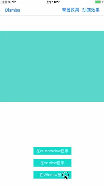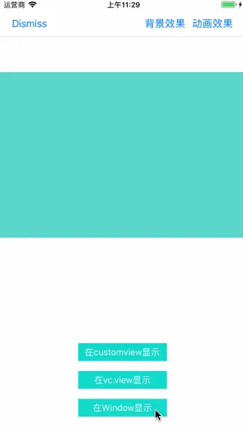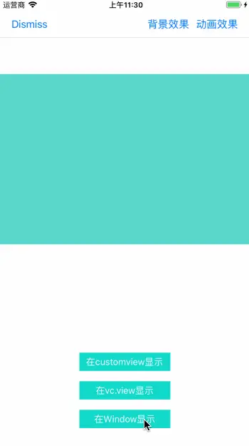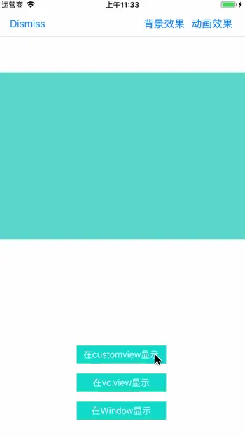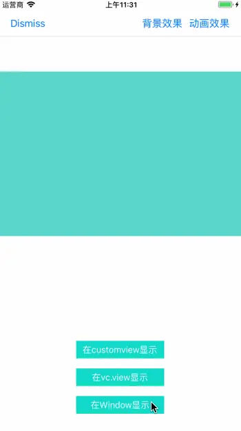 JXPopupViewAnimationProtocol协议即可; - 使用灵活,通过view封装,可以在任何view上面展示,并不局限于UIViewController;