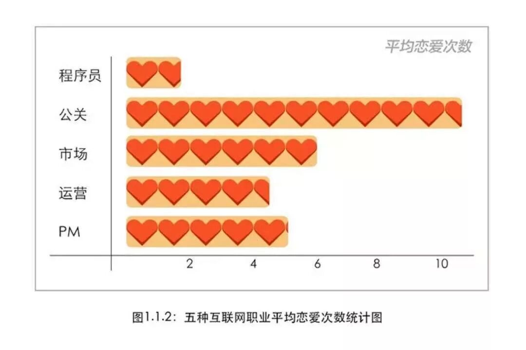 程序员平均恋爱次数不超过两次,而公关恋爱次数最多,高达 12 次。