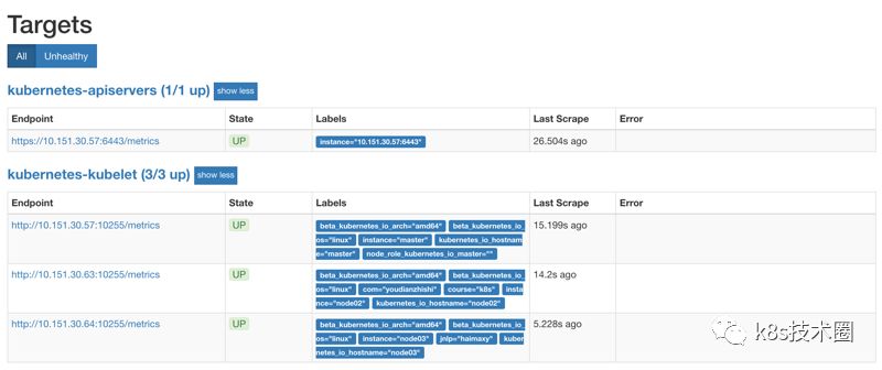 更新完成后,我们再去查看 Prometheus 的 Dashboard 的 target 页面: