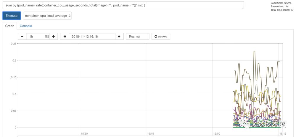 我们可以看到上面的结果就是集群中的所有 Pod 在1分钟之内的 CPU 使用情况的曲线图,当然还有很多数据可以获取到,我们后面在需要的时候再和大家介绍。