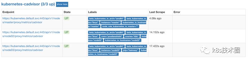 /api/v1/nodes/${1}/proxy/metrics/cadvisor,现在同样更新下配置,然后查看 Targets 路径: