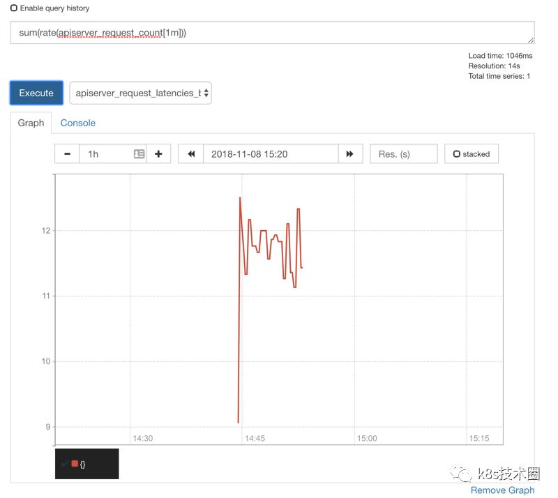 这里我们使用到了 promql 里面的 rate 和 sum函数,表示的意思是 apiserver 在1分钟内总的请求数。