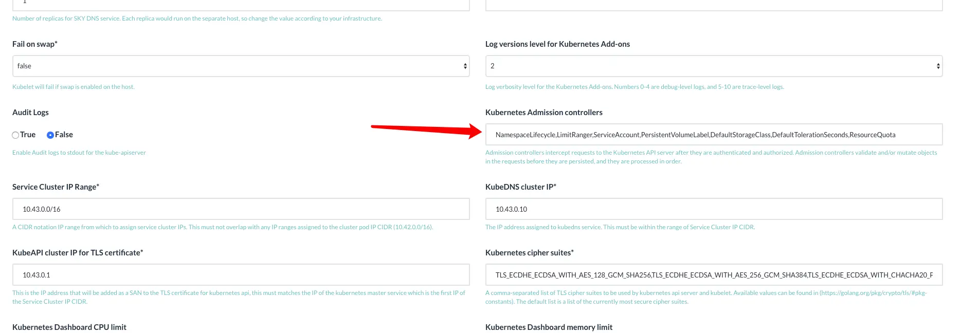 需要找到Kubernetes Admission controllers选项,如下
