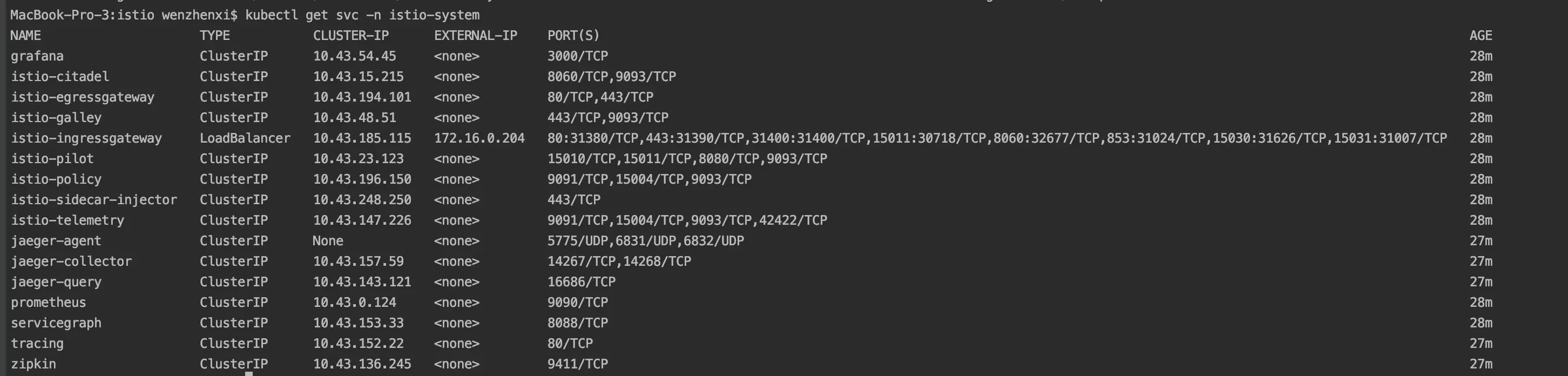 > kubectl get svc -n istio-system