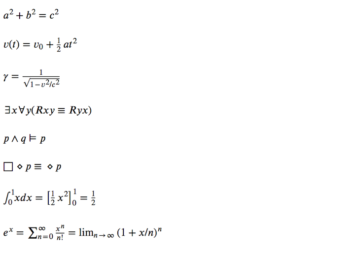 Pandoc 的优势之一是以不同的输出文件格式显示数学公式。例如,我们可以从包含一些数学符号(用 LaTeX 编写)的 LaTeX 文档(名为 math.tex)生成一个网页。