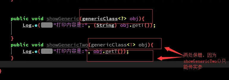 showGeneric(genericClass<?> obj)也是一个普通的方法,只不过使用了泛型通配符?,这也印证了泛型通配符?是一种类型实参