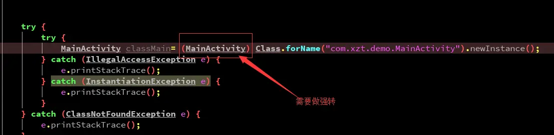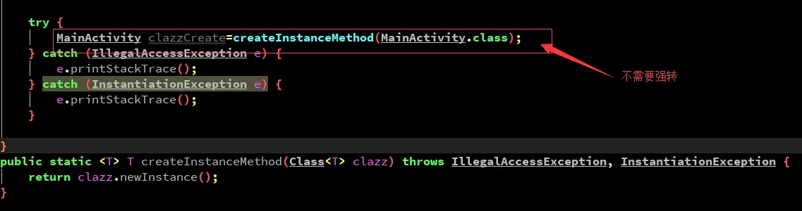 我们看一下不加泛型,反射创建一个类对象,需要强转: