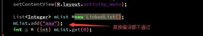 不用说这样一运行肯定会报一个类型不能转换的错误。注意虽然不正确但编译器没有发现,运行时才会报错,那我们试试加泛型的。
