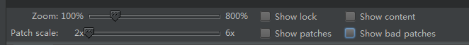 3.如果发现你的点9图片太小或者极小,可以拖动图片下方的zoom放大图片,然后就可以精确操作了。