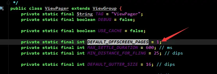 可以看到如果我们设置的值,小于DEFAULT_OFFSCREEN_PAGES这个常量值,那么就会被赋值为DEFAULT_OFFSCREEN_PAGES,那么我们看看DEFAULT_OFFSCREEN_PAGES值是多少: