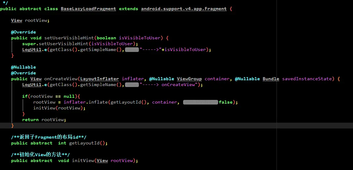 最后附上总代码,编写Fragment时,只需要继承该类,然后调用可见的方法就好了。