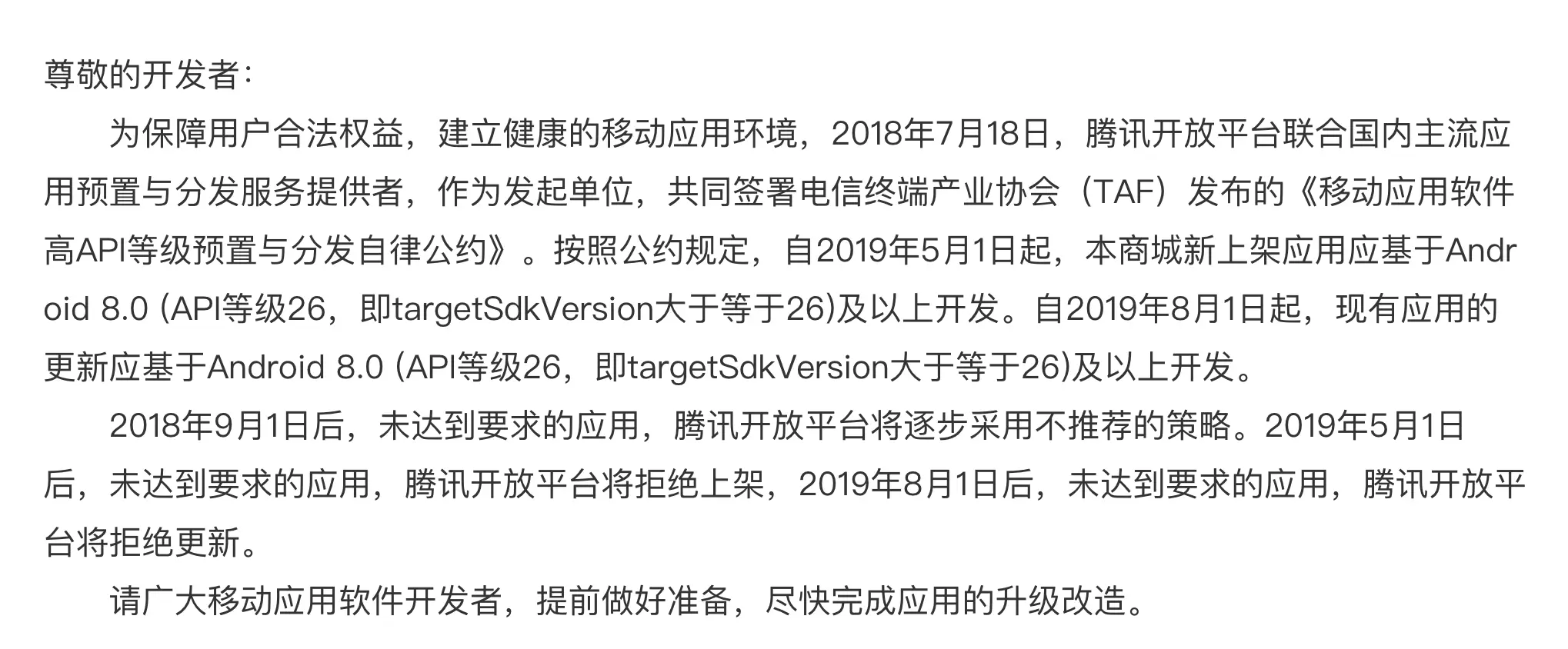 想必各位小伙伴早就都有收到各大应用市场下发的关于《软件高 API 公告》吧!