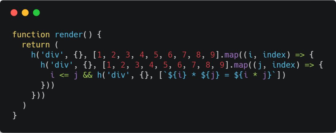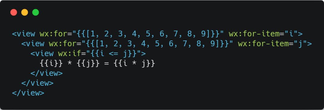 微信小程序和 Omi 框架都是使用 Web Components(CustomElements 和ShadowDom)渲染组件,以搭积木的方式搭建 Web 页面,小程序在定制的 WebView 中渲染组件,Omi 在 PC、Mobile、TV 等现代浏览器环境渲染组件,Omi 使用 JSX 作为 UI 表达式,小程序使用模板引擎,JSX 是图灵完备,可以表达一切模板引擎。比如举个99乘法表的例子: