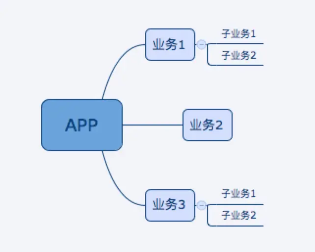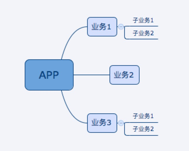 以我自己为例,我会采用xmind或类似工具,将所拆分的业务画出来,就像一个公司的组织架构一样:公司由若干个大的事业部组成,每个事业部包含若干个二级部门,二级部门又有可能包含三级部门。将你的项目划分成几个大的业务,每个大的业务再细化成若干个小的业务,业务层次划分不必太细,一般保持2层即可,否则设计的组件太多,实施起来会更加繁琐。
