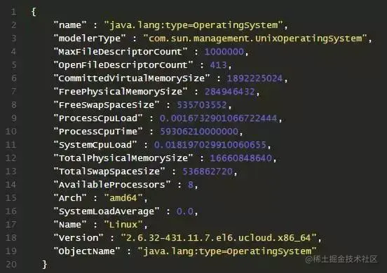HBase 中对于 OS 的监控数据,主要是 OperatingSystem 的对象来进行的,如下就是我提取出来的 JSON 信息。