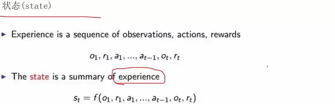 状态:当前智能体所处的一个状态。