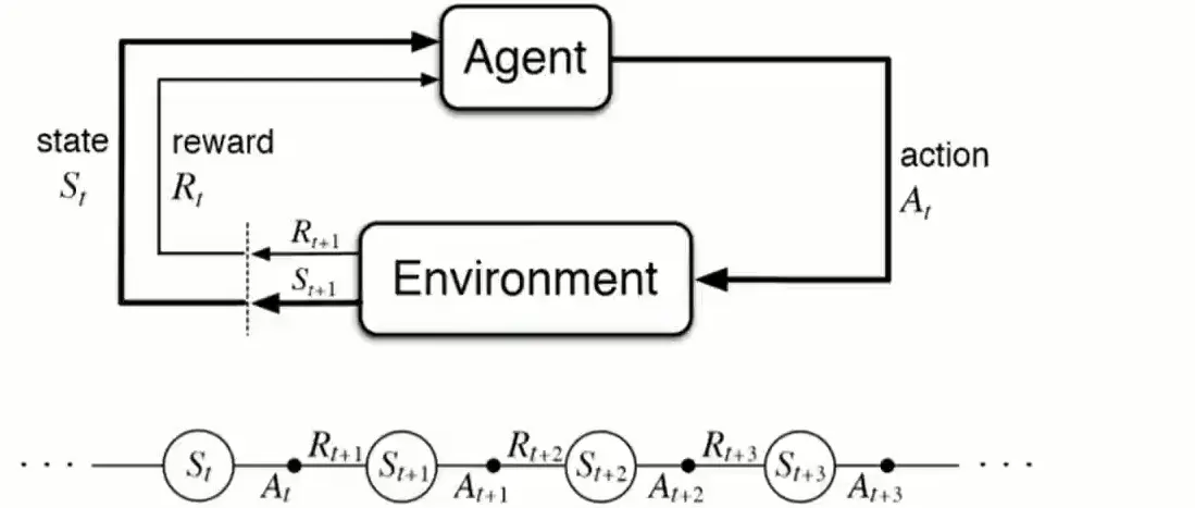 策略:首先在当前的一个环境下,已经看清楚了现在的状态,然后你会有一个目标,对AlphaGo来说最终你想赢。我们会先制定一系列的策略,比如对现在这个状态,我按照什么样的一系列的动作组合,能使得我最终能获胜,得到最大的奖励值。
