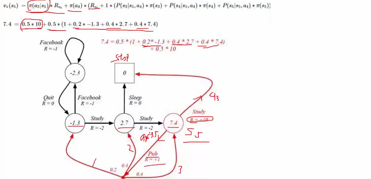 未来回报的期望就表示着:在当前状态下,可以得到最终的结果或者说平均结果是什么样的,它是一个期望值。