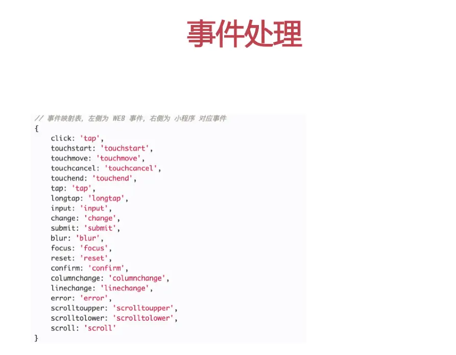 事件处理的映射 web事件 , 小程序事件