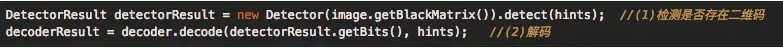 QRCodeReader的decode()是二维码检测的主方法,分为两步:(1)大致判断是否存在二维码;(2)解码。