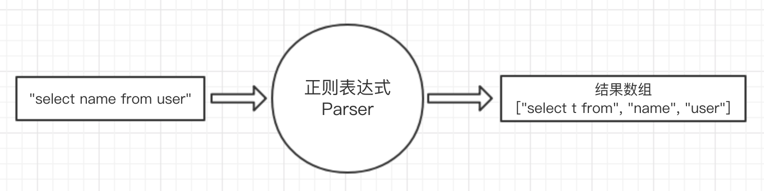 我们仔细思考一下上面的流程,其实正则表达式主要帮助我们做了一件事,那就是将一条 sql 语句转化为结构化的数据 ["select t from", "name", "user"] ,从而我们根据结构化的数据来获取自己想要的信息。