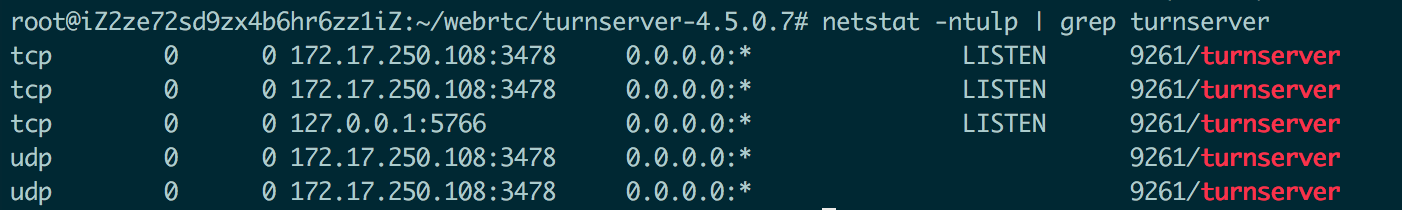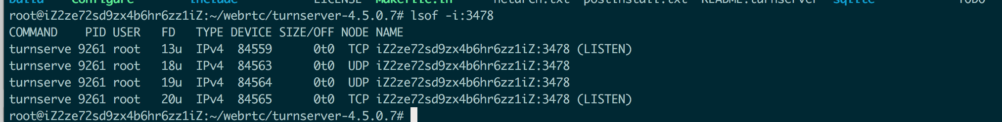 netstat -ntulp | grep turnserver #或者 lsof -i:3478