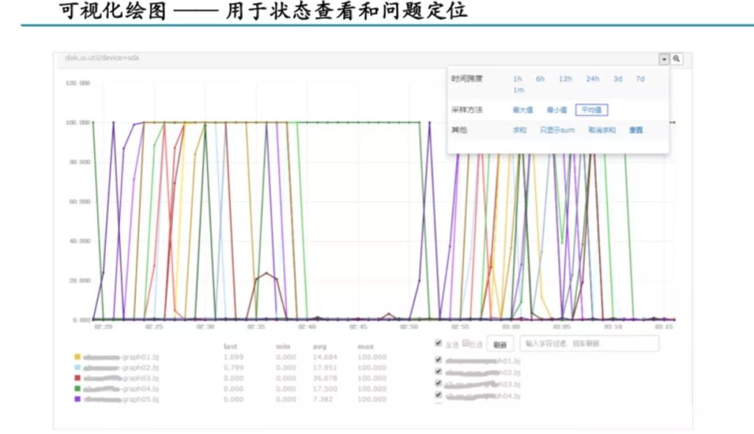 假设我有一个节点,下有十台机器,我显示这十台机器的情况,就要有十条曲线。但我现在想要看一个整个节点的总体情况,那曲线的聚合就必不可少了。可以通过将多条曲线,同一时刻的数据相加或者求平均,来进行数据的聚合,用以体现出一个总体的情况。