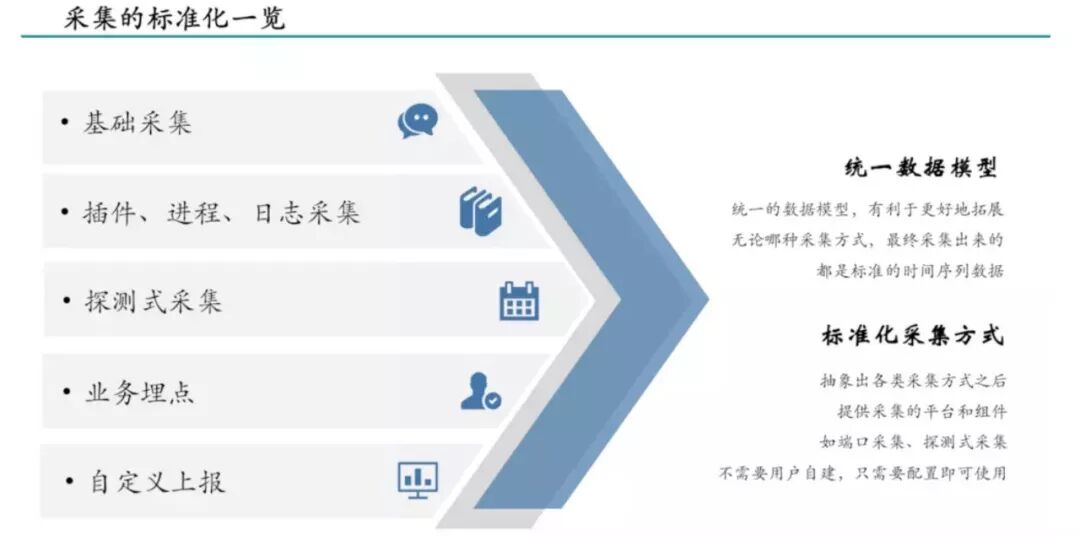 标准化,即抽象出统一的数据模型,用以支持各种自定义的采集数据。