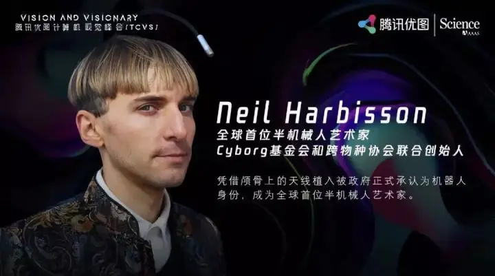 作为一名当代艺术家和cyborg主义者,Neil Harbisson最著名的是他以他的颅骨上植入的天线而被政府正式承认为一个机器人。天线允许他通过颅骨内的可听振动感知可见和不可见的颜色,以及通过互联网连接将空间、图像、视频、音乐或电话中的颜色传入脑中。他也是Cyborg基金会(Cyborg Foundation)和跨物种协会(Transpecies Society)的联合创始人。