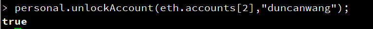 personal.unlockAccount(eth.accounts[2],"duncanwang");