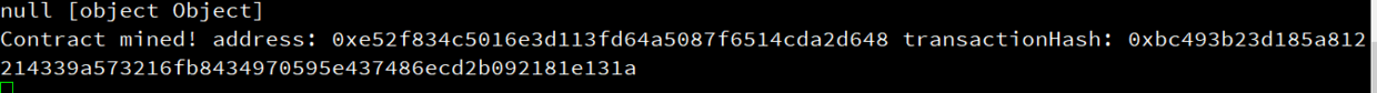 console.log('Contract mined! address: ' + contract.address + ' transactionHash: ' + contract.transactionHash);