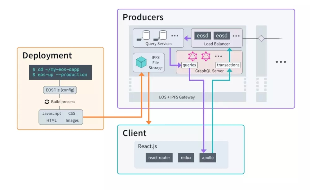 相信关心 EOS 系统的同学肯定见过下面这张蓝图。对,目前只是一个蓝图,而且以 BM 的尿性,肯定在心理已经把这张图改的面目全非了(比如图中的 eosd 早就改名了)。所以这张图只能作为未来 EOS 发展方向的参考而已,目前的 EOS 还远没有这么复杂和完善。