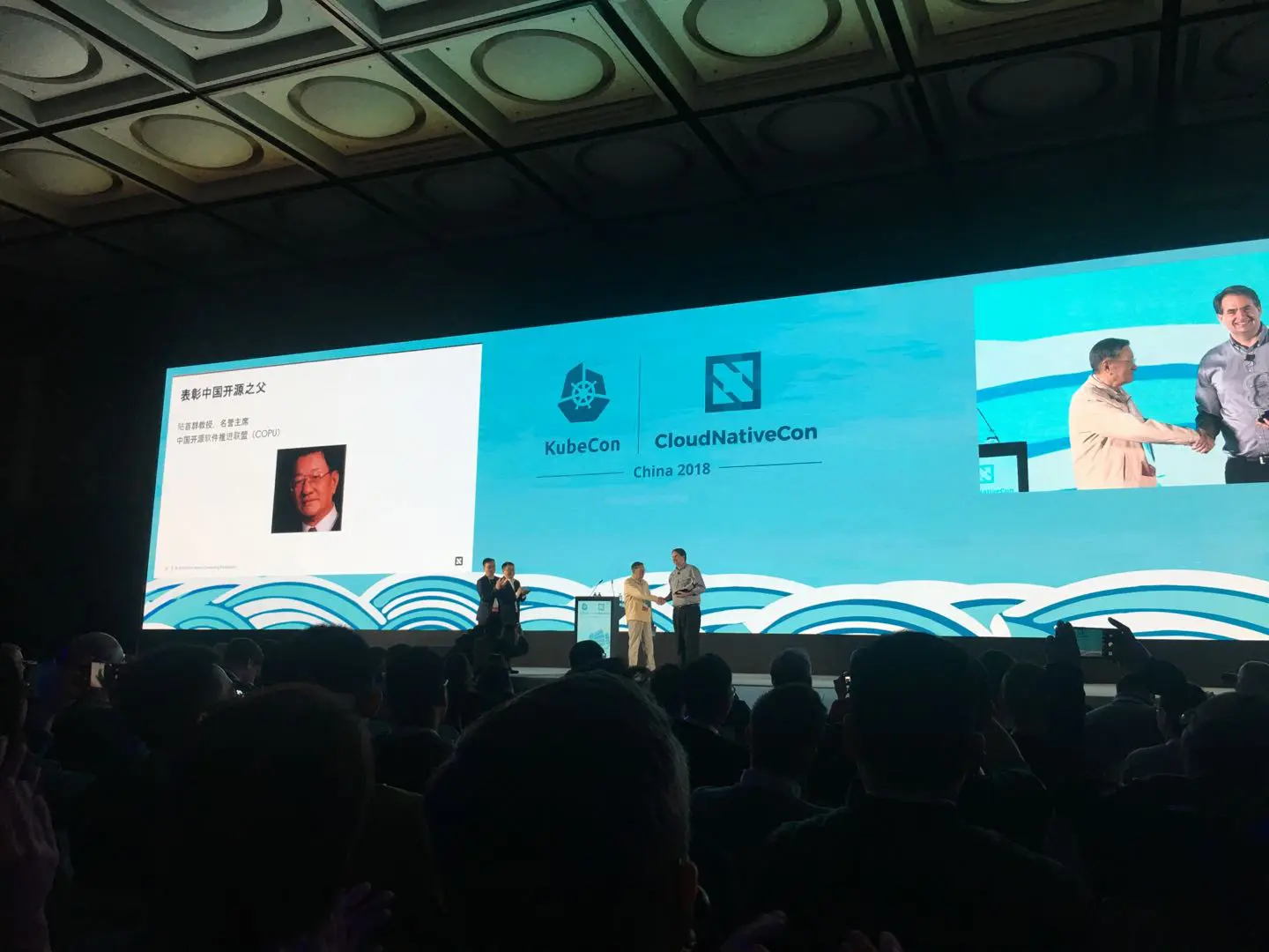 随后,Dan Kohn 对中国开源软件推进联盟(COPU)名誉主席陆首群教授颁发了 CNCF 开源领袖奖,以表彰陆教授在中国开源领域做出的突出贡献。陆教授表示:云原生技术在中国与大数据、AI、区块链的无缝衔接正在推动中国企业数字化转型。未来,将会有更多的新生云技术崭露头角,让我们共同为云计算的发展努力。