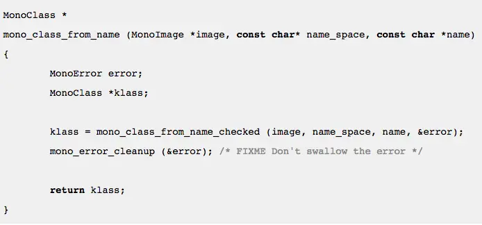深入分析跟进,发现游戏进程在启动时,会加载多个新的动态库,其中包括了libsubstrate.so(此为一个著名的Hook框架,接着分析找到了他通过调用框架Inline Hook了libmono.so导出的两个方法,Hook的方法mono源码参考如下: