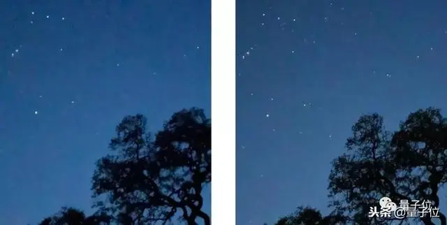 左图为手持拍摄,333毫秒曝光×15帧=5秒;右图为三脚架拍摄,1秒曝光×6帧=6秒。可以看出右边图像更清晰,而且能看到更多星星。