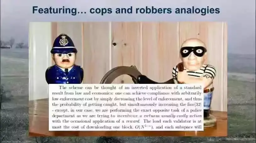 权益证明(PoS)的相关研究始于 2014 年。我在一月份发表的这篇博文(Slasher: Punitive Proof-of-Stake Algorithm)阐述了一个叫做罚没者(Slasher)的算法,引入了权益证明算法中最基础的概念:如果你违反协议并且被发现了,(这是可以被证明的),你就要接受惩罚;这一方法可以用来提升安全性。但在那时,正如你可以在幻灯片中看到的,我相信 Slasher 是一种非常有用的建构,可以让权益证明“挖矿”的武器库变得更充实,并为我们提供更强力的理由切换到权益证明。当然我们还没这么做。