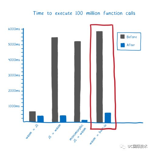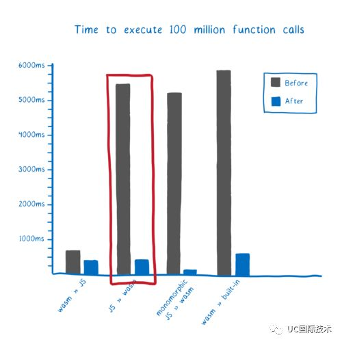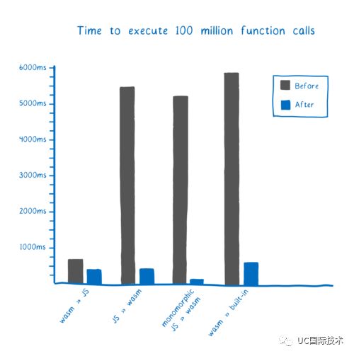 有了这个,从 WebAssembly 到 JS 的调用几乎和 JS 到 JS 调用一样快。