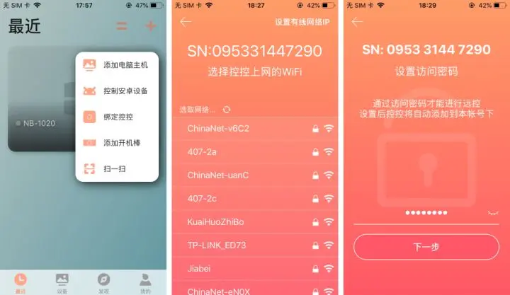 和绑定向日葵被控机类似,我们依旧需要将控控绑定到你的向日葵账户中,打开向日葵控制端,点击右上角的 + 绑定控控,之后选择链接控控的 Wi-Fi,绑定并选择控控上外网的无线并设定链密码完成绑定。