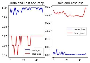 Epoch 48/50 8/8 [==============================] - 132s 16s/step - loss: 0.0025 - acc: 1.0000 - val_loss: 0.2758 - val_acc: 0.9700 Epoch 49/50 8/8 [==============================] - 130s 16s/step - loss: 0.0080 - acc: 0.9950 - val_loss: 0.2922 - val_acc: 0.9700 Epoch 50/50 8/8 [==============================] - 131s 16s/step - loss: 4.7076e-04 - acc: 1.0000 - val_loss: 0.2875 - val_acc: 0.9700