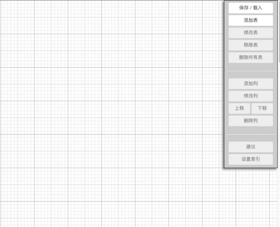 详细介绍下图是RDS数据库优化设计系统的工作界面,主要由工作界面和右侧的菜单栏组成。类似于mysql workbench,提供了基本的新建、修改、删除表等功能,全部通过可视化操作。这一部分我们从表、列、索引三部分介绍