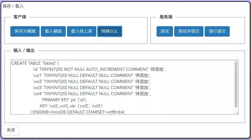 对于一些相似的产品或者业务,其数据库中的表结构往往差异不是很大,这时候用户可以先编辑一份通用模版,保存到服务端。当开发相似产品时,只需要导入通用模版,并在模版上做少部分修改即可。